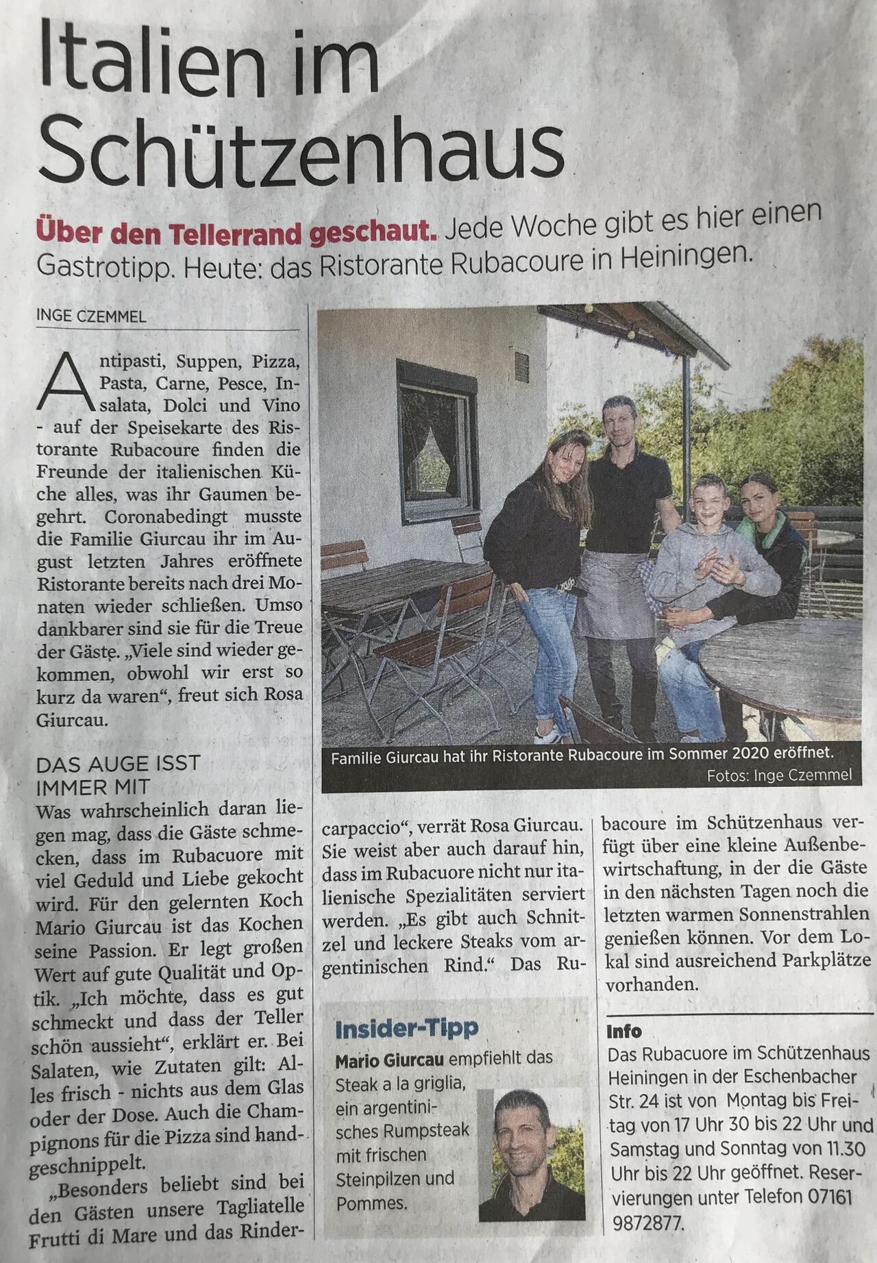 seit 01. August bewirtet Sie neue Inhaber Mario Giurcau und freut sich auf Ihren Besuch. Dabei legt das Ristorante Pizzaria Rubacuore großen Wert auf klassische italienische und frische Küche. Überzeugen Sie sich gerne selbst und besuchen Sie uns in unserem Restaurant!
